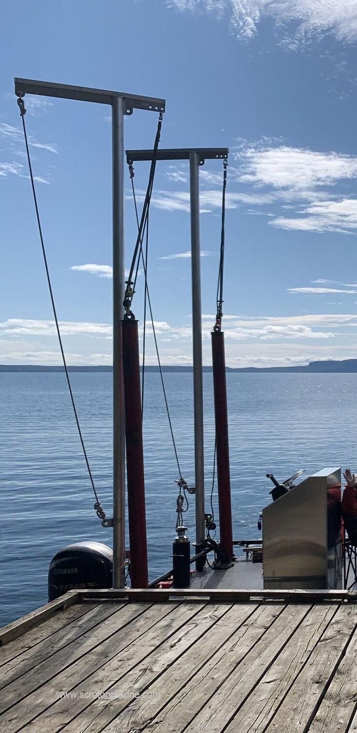 (2) 10’ Steel Spuds at stern with custom aluminum lifting cranes