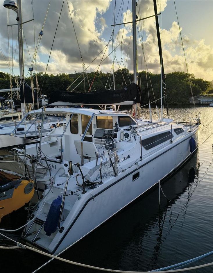 The Gemini 105MC is widely regarded as one of the most practical cruising catamarans under 35 feet. With her 14ft beam (dock-friendly), lifting daggerboards, and efficient single diesel engine setup; she offers economical cruising without sacrificing space. Her shallow draft, modest running costs and substantial renewable energy setup make her particularly attractive for Caribbean island hopping or extended liveaboard use.