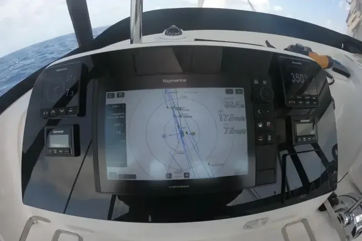 Raymarine central navigation, log, speedometer, depth sounder, wind speed and wind direction.
