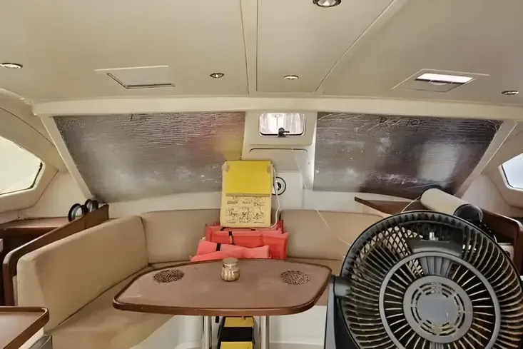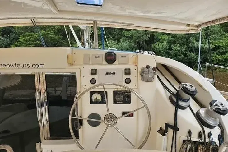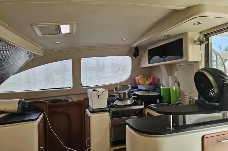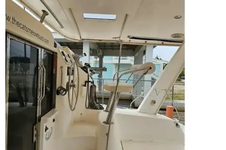 CAT’S MEOW is in fair condition. This 2008 model has two newer engine upgrades (2015 & 2021) and also includes a dinghy.