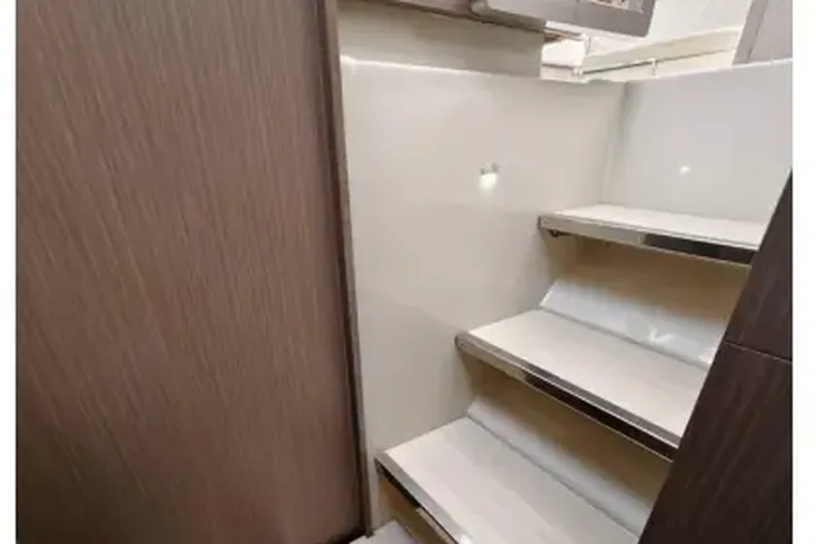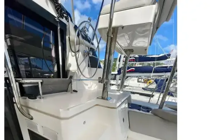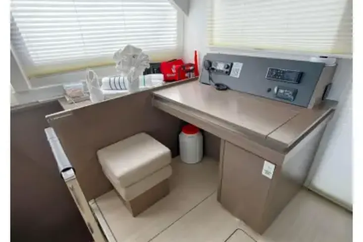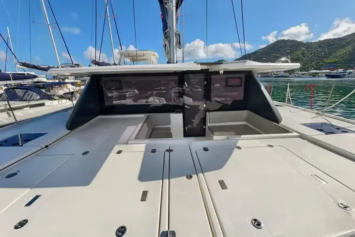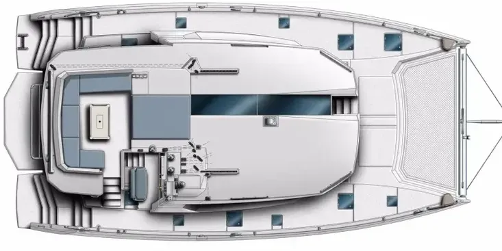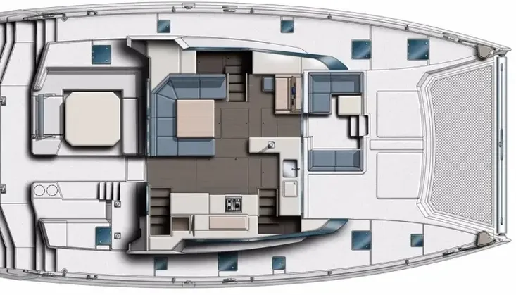 The Leopard 50 has the ideal layout for anyone looking for more outdoor living space as she comes equipped with a flybridge that includes a lounge area, table, sunbed and optional exterior speakers and shade awning. Access is provided by floating stairs leading up from the aft cockpit. An important distinction compared to similar sailboat flybridge configurations is that while under sail, passengers can move about the flybridge with ample headroom and never worry about interference from the boom. The flybridge is also situated to still maintain contact with the helm station, an important feature found on all Leopard Catamarans.