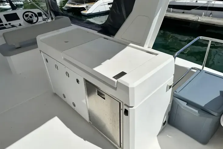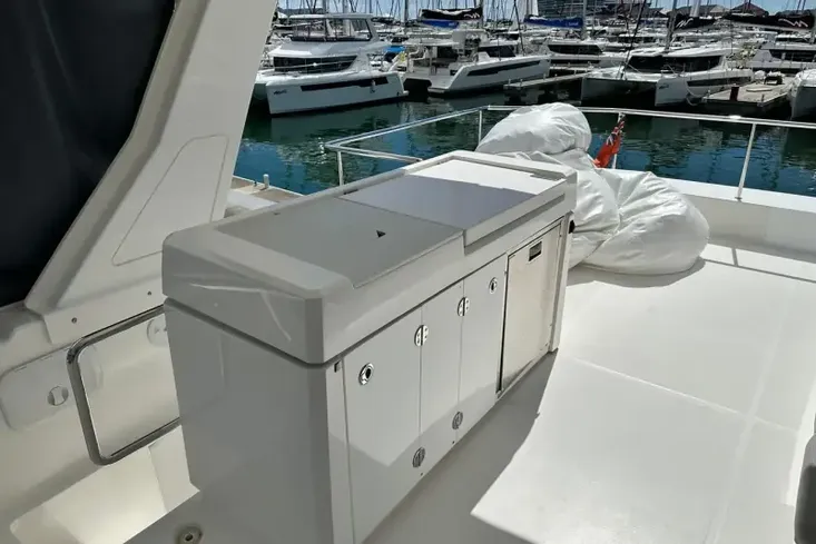 - WETBAR: on flybridge with sink, grill, icemaker and fridge