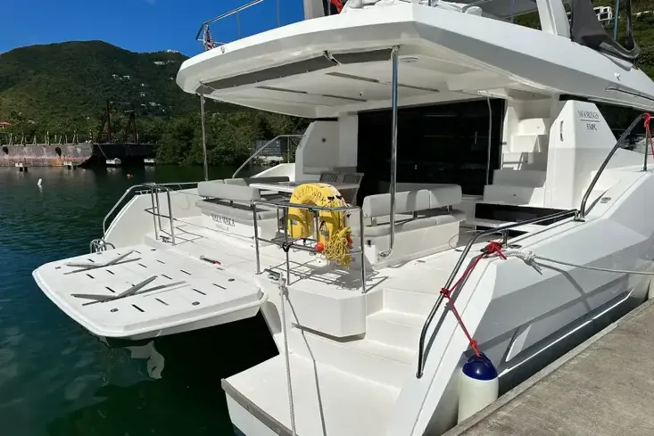 The Leopard 53 Powercat offers a modern interior with the comforts of home as well as plenty of outdoor entertaining space. Combined with the smart and economical advantages of the catamaran design, she is easy to maintain and operate, and is up to 50% more fuel efficient than her monohull motoryacht counterparts.