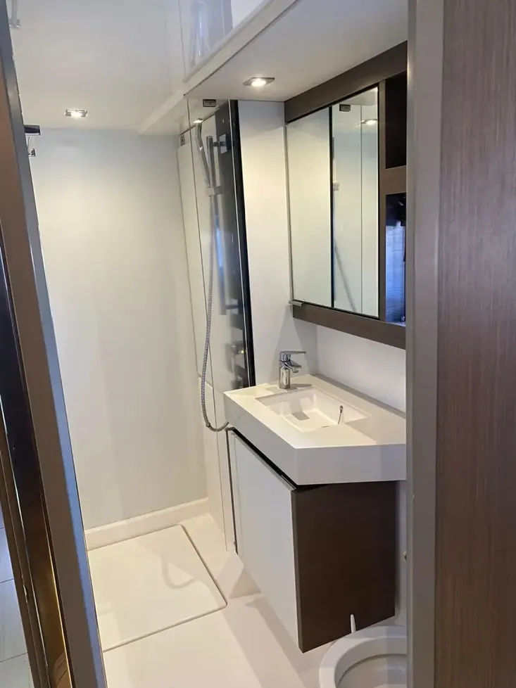 The interior’s atmosphere will entice, with cool tones and modern finishes. The four-cabin owner’s version provided an at-home feel with a large cabin.
